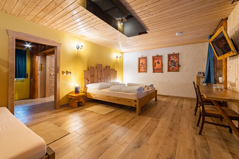 Ubytujte se u nás v krásném, stylově zařízeném čtyřlůžkovém pokoji s jedinečným příběhem z Divokého západu, který vás přenese do westernové atmosféry.