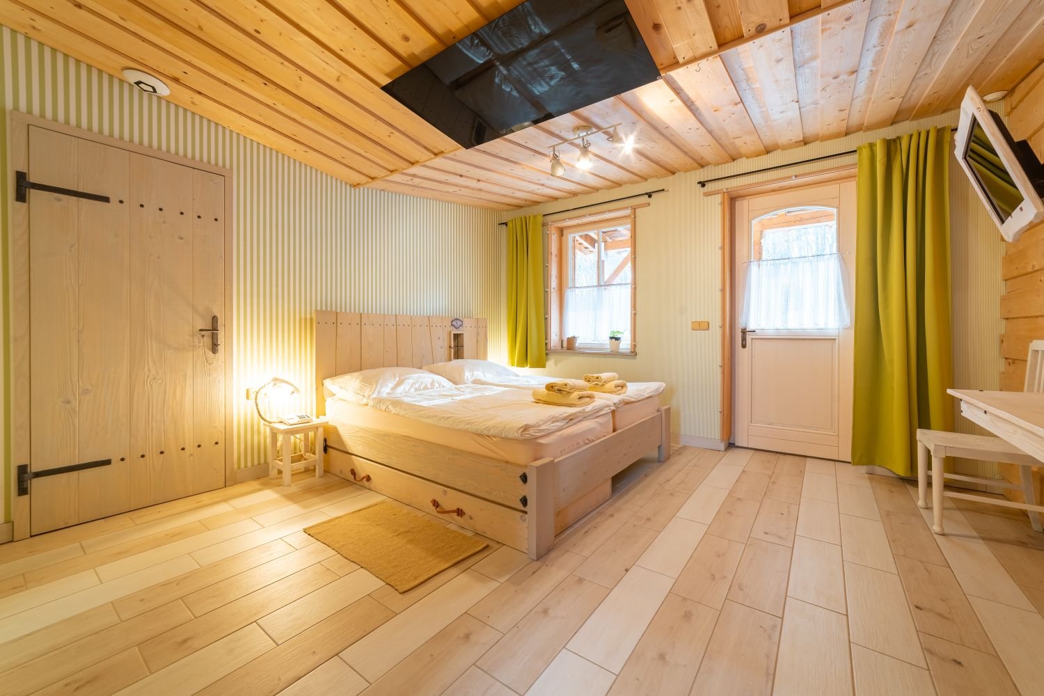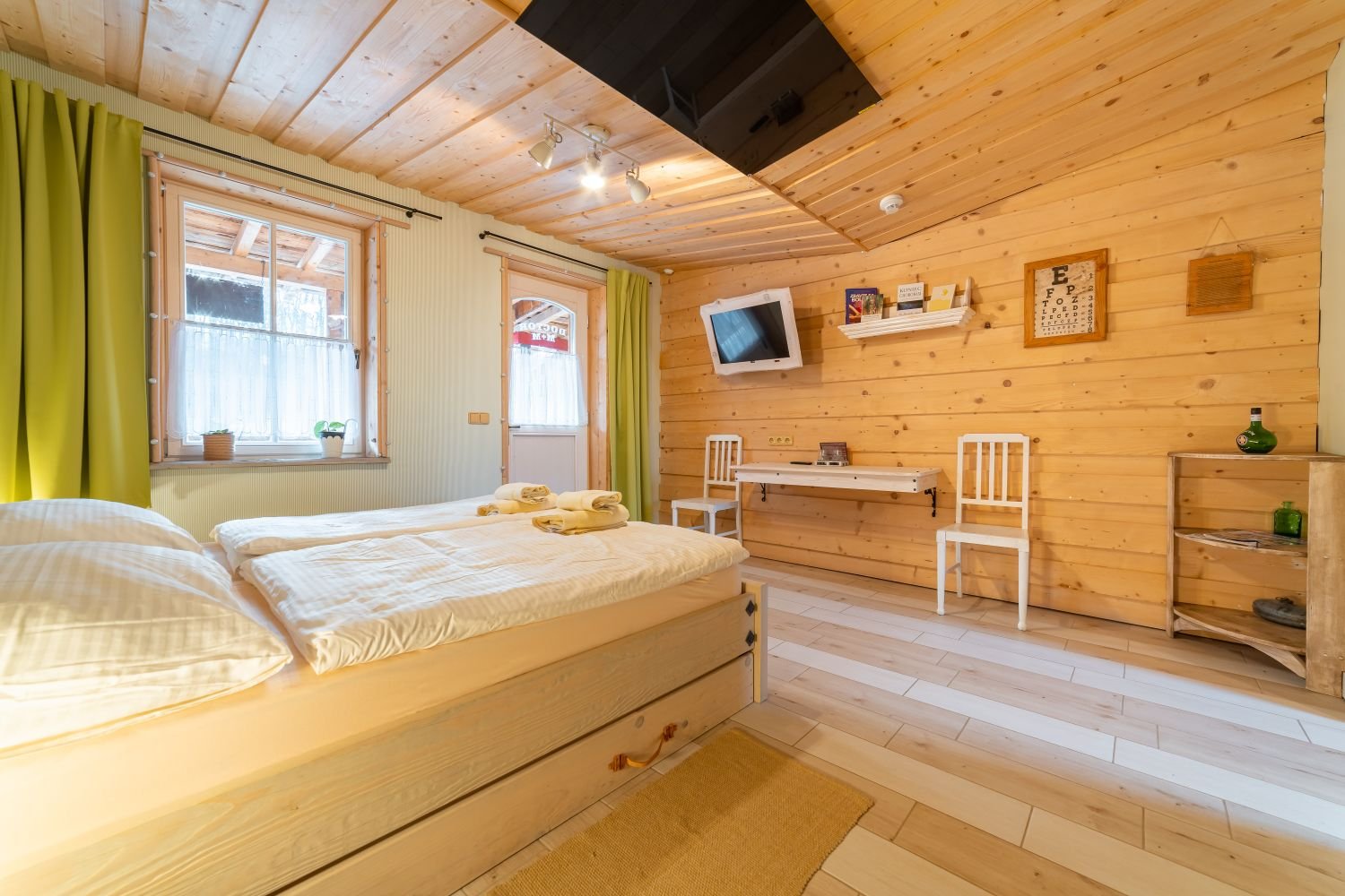 Tento dvoulůžkový pokoj s názvem Pokoj Doktor M+M se nachází v přízemí a lze k němu přidat rozkládací lůžko, které našim hostům poskytne větší pohodlí a flexibilitu.