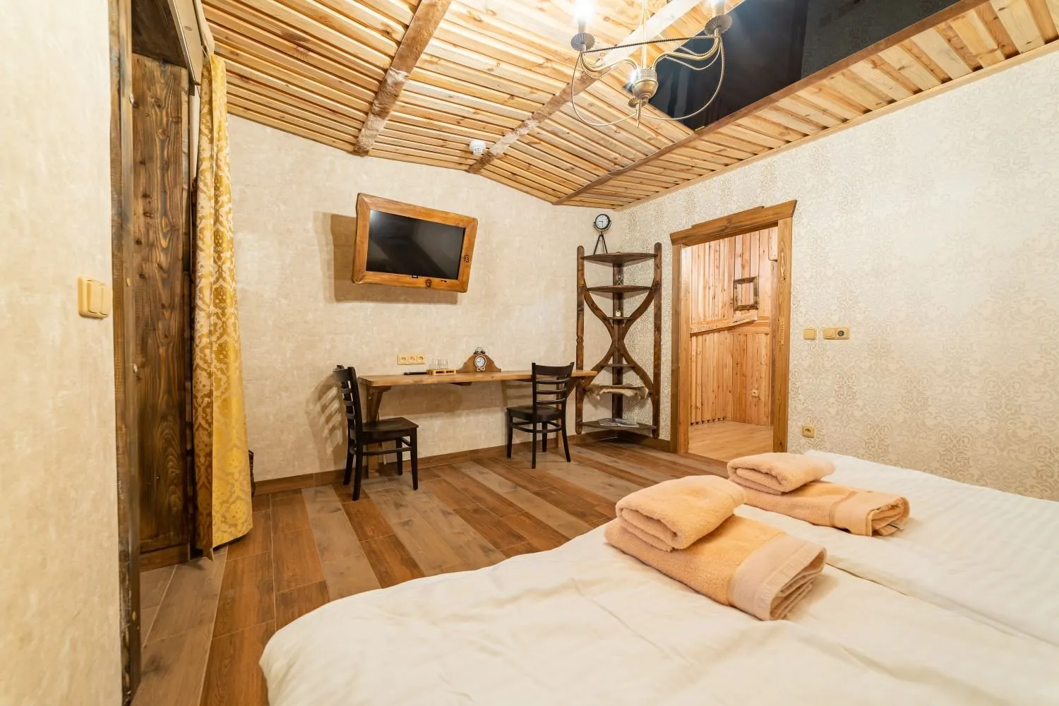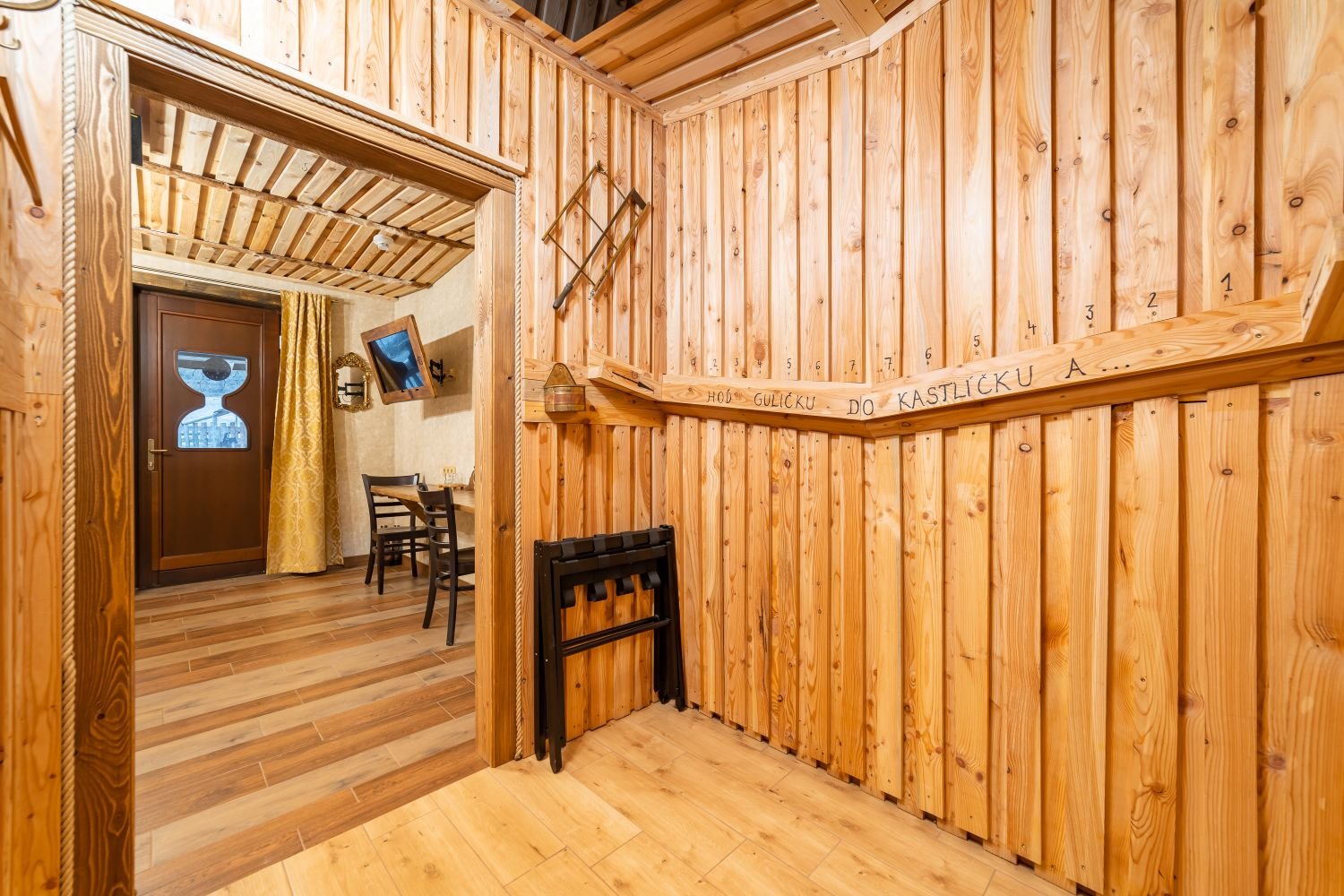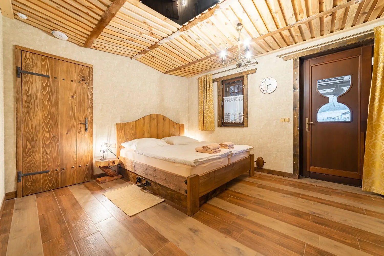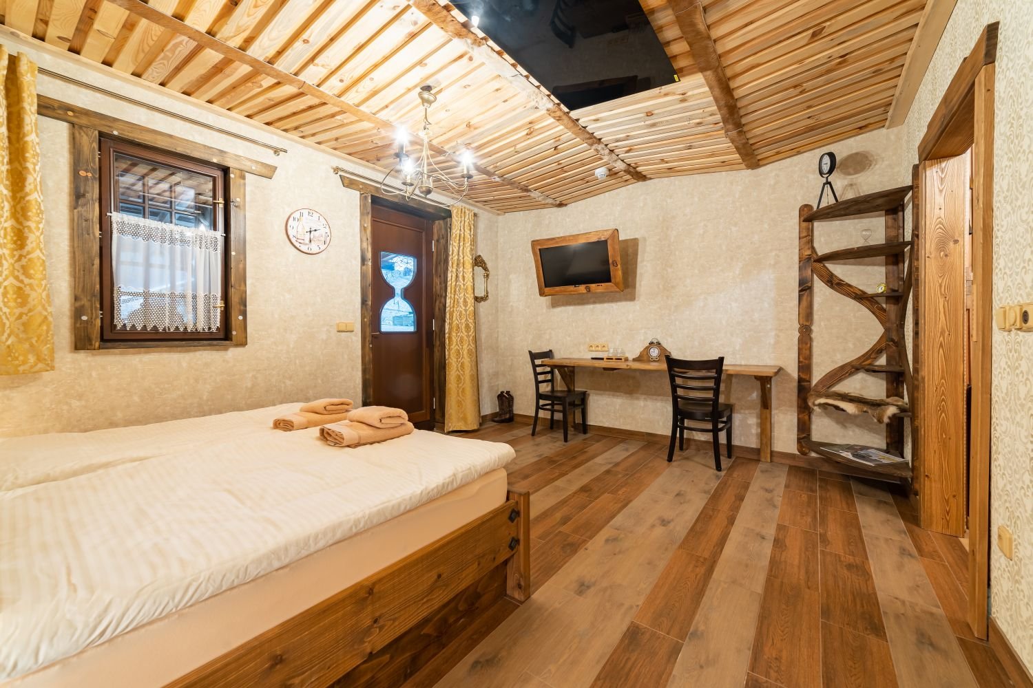 Tento dvoulůžkový pokoj s názvem Pokoj hodináře a klenotníka se nachází v přízemí a lze k němu přidat rozkládací lůžko, které našim hostům poskytne větší pohodlí a flexibilitu.