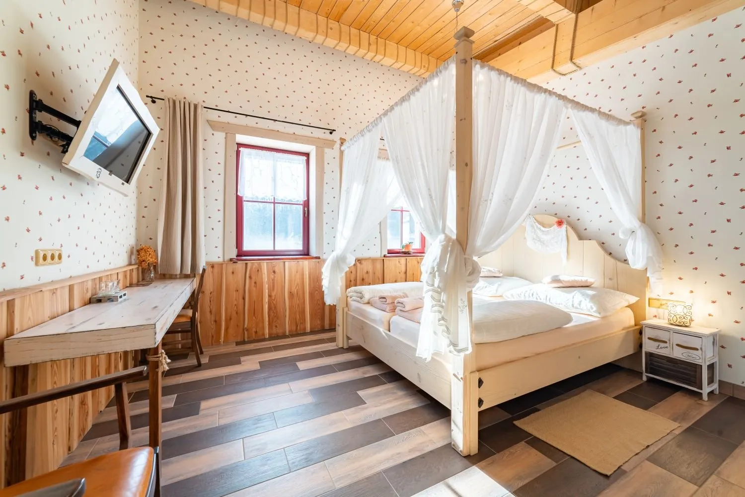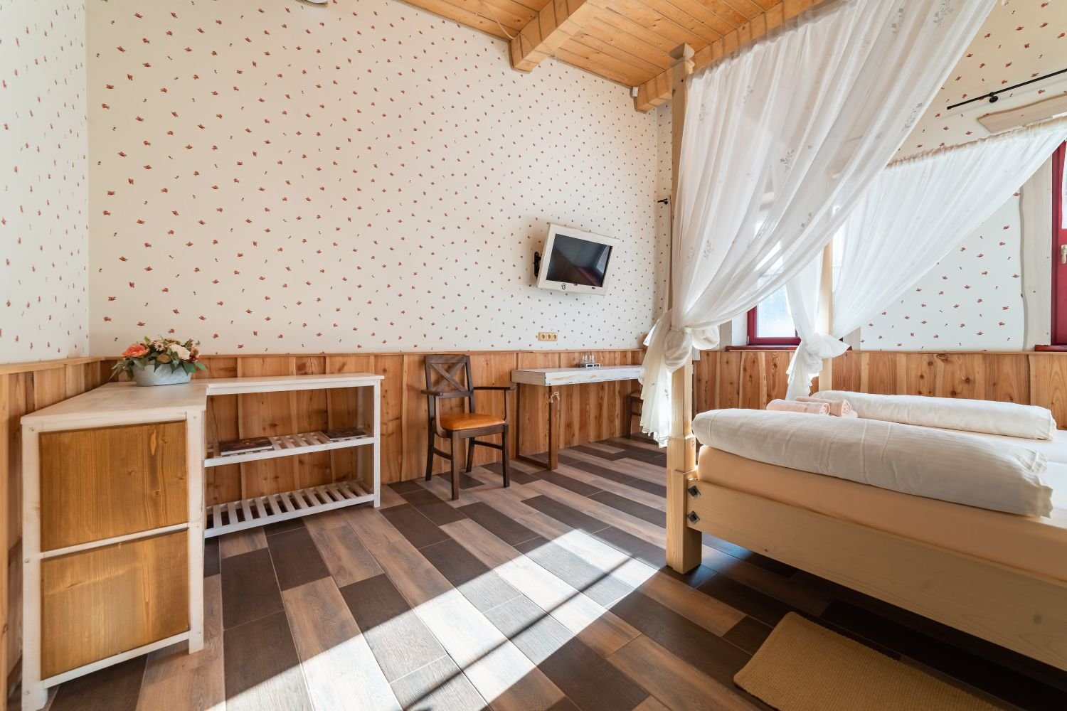 Tento dvoulůžkový pokoj s názvem Pokoj č. 23 se nachází v patře a lze k němu přidat rozkládací lůžko, které našim hostům poskytne větší pohodlí a flexibilitu.