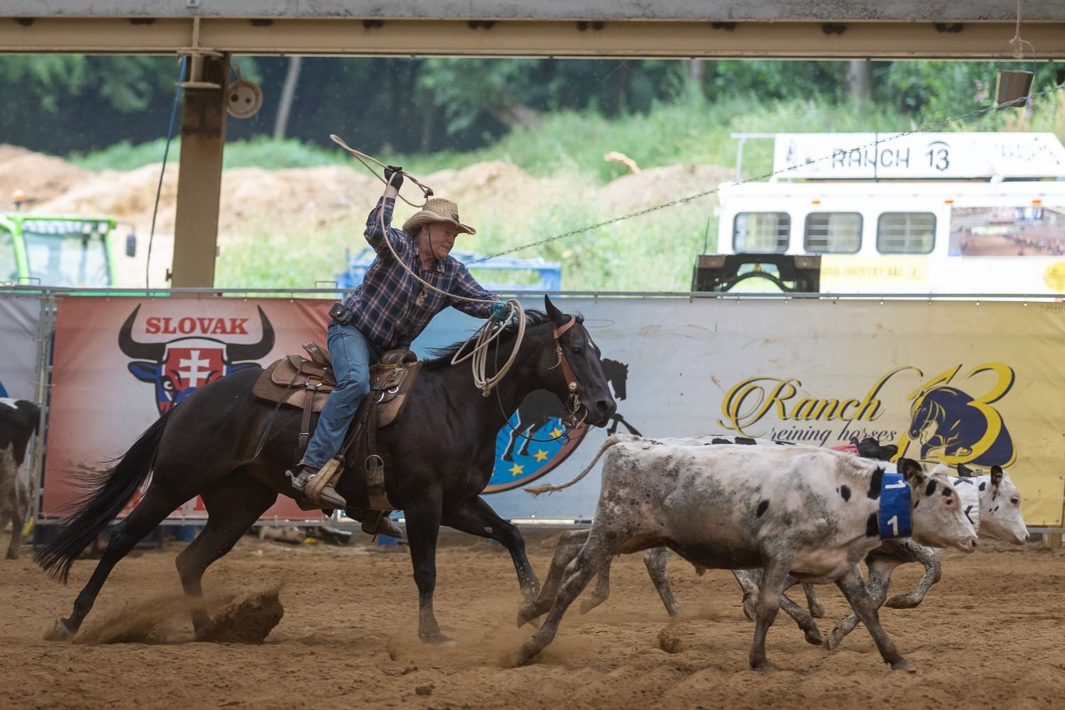 23.7. Streda raňajky cowhorse dummy roping Obed Cowhorse,ohradky  TR training / Steer stoping Večera
