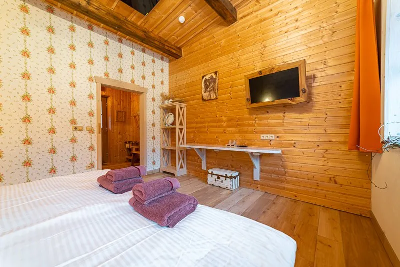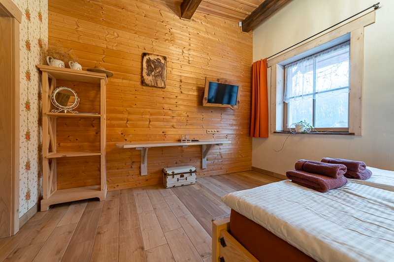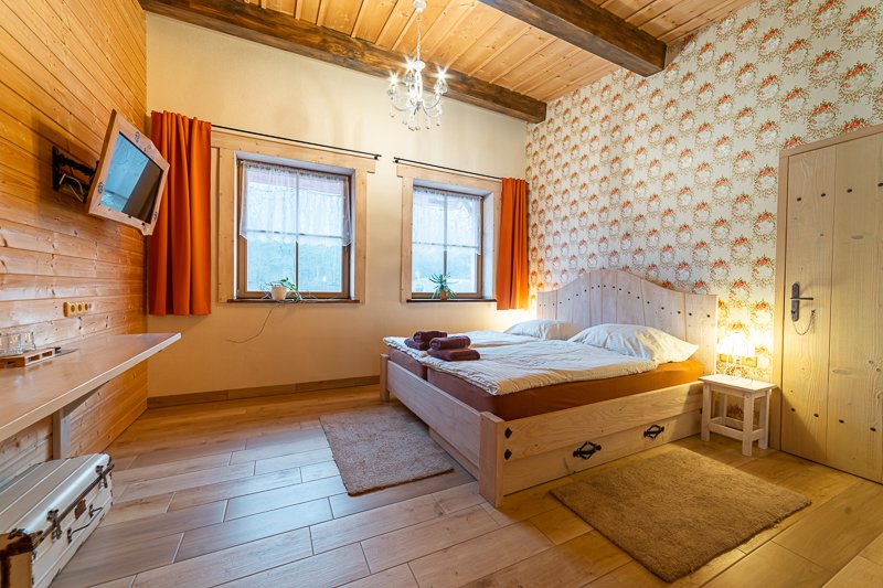 Táto dvojlôžková izba, nazývaná Room Lady Kiki, sa nachádza na prízemí a je možné do nej pridať výsuvnú prístelku, čo poskytuje väčší komfort a flexibilitu pre našich hostí.